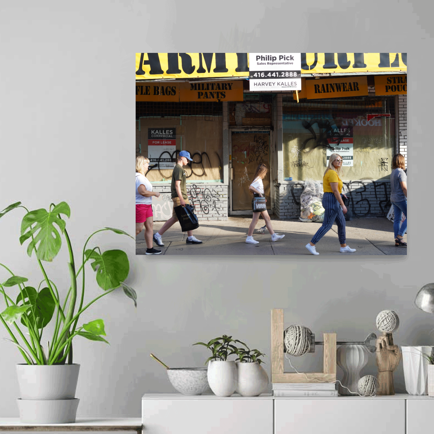 This photo offers an interesting juxtaposition as it portrays a family of (likely) tourists “marching” in uniform in front of the boarded up and for lease, Army Surplus. A sign the times are changing as one of the more iconic stores in Kensington is closing down to later become, Abu Hummus. Taken June 2019